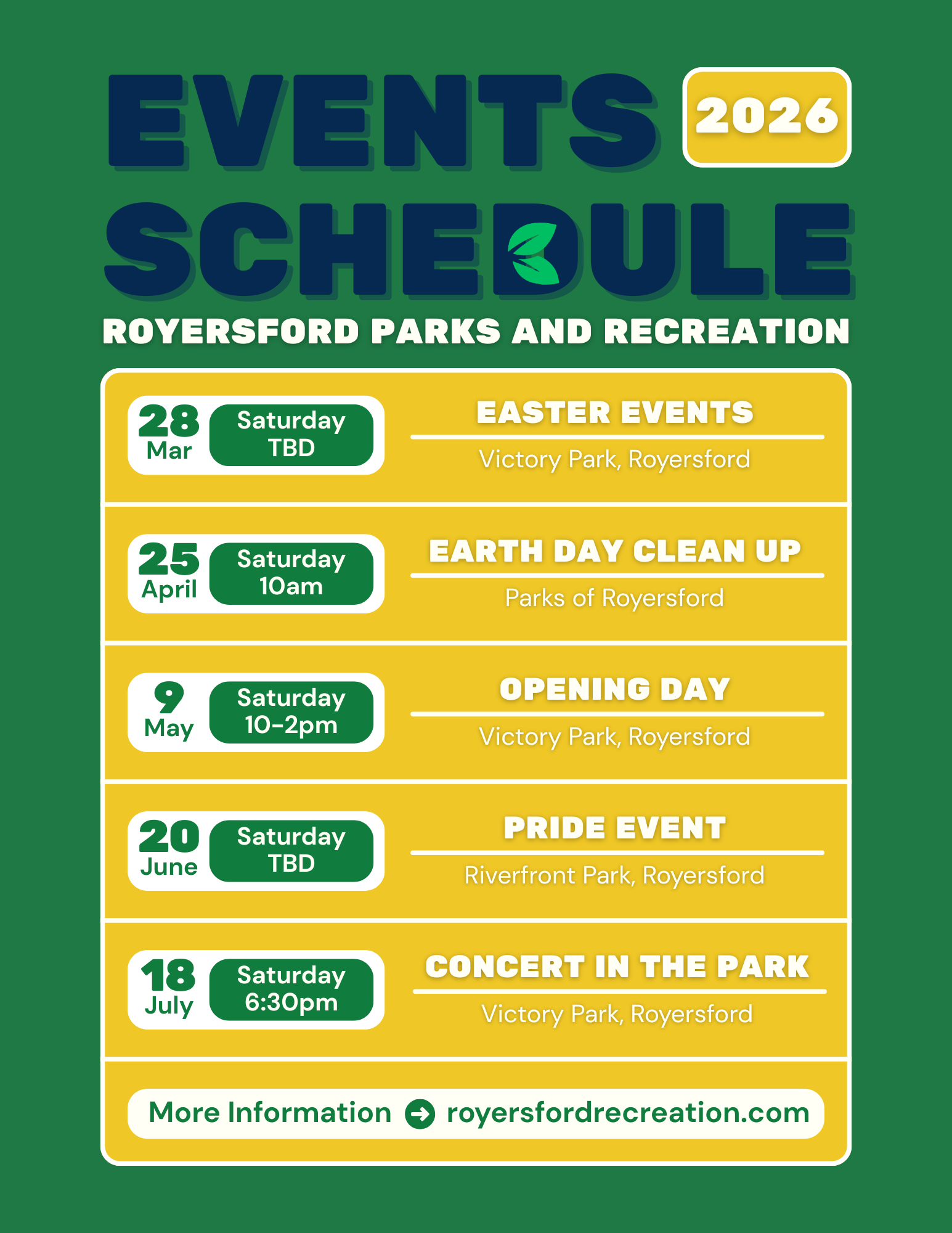Check out all of the amazing FREE events available to the community through the hard work and dedication of the Parks and Recreation Commission.